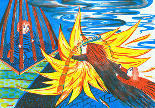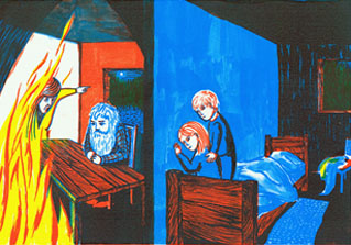 hoch brannte, sagte die Frau: „ Nun legt euch ans